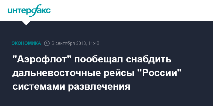 Москва. 6 сентября. INTERFAX.RU - "Аэрофлот" пообещал снабдить рейсы дочерней авиакомпании "Россия" из Москвы на Дальний Восток системами развлечения.