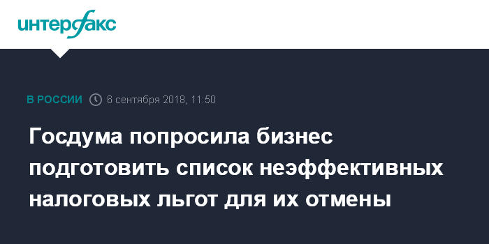 Госдума попросила бизнес подготовить список неэффективных налоговых льгот для их отмены