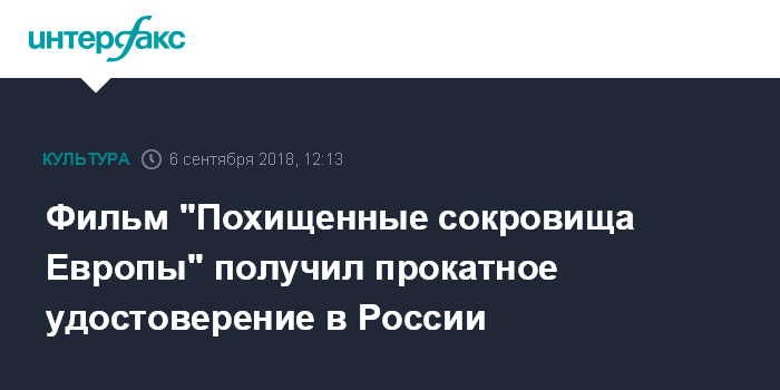Фильм "Похищенные сокровища Европы" получил прокатное удостоверение в России