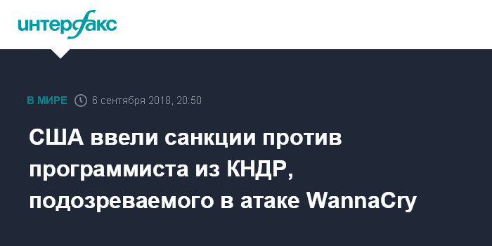 США ввели санкции против программиста из КНДР, подозреваемого в атаке WannaCry