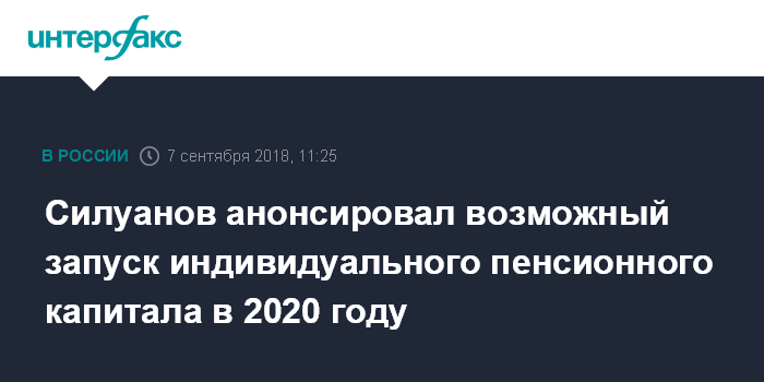 Москва. 7 сентября. INTERFAX.RU - Новая накопительная система - индивидуальный пенсионный капитал (ИПК) может быть запущена с 2020 года, сообщил первый вице-премьер - министр финансов РФ Антон Силуанов.