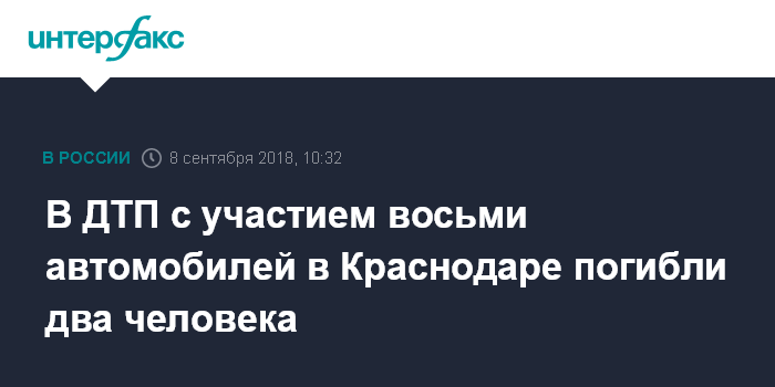 Москва. 8 сентября. INTERFAX.RU - Два человека погибли, еще четверо пострадали в ночной аварии с участием восьми автомобилей на одной из улиц Краснодара, сообщила пресс-служба Главного управления МВД России по Краснодарскому краю в субботу.
