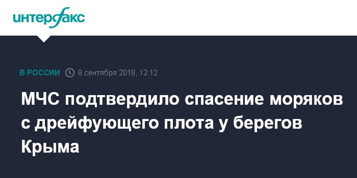 Москва. 8 сентября. INTERFAX.RU - Моряки с сухогруза "Сарыч" подняли на борт экипаж из семи человек буксира "Шквал", который потерпел бедствие в Керченском проливе у берегов Крыма и дрейфовал на плоту, сообщил помощник начальника крымского управления МЧС РФ Владимир Иванов.