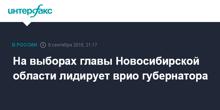 Москва. 9 сентября. INTERFAX.RU - После обработки 91,41% протоколов участковых комиссий на досрочных выборах губернатора Новосибирской области лидирует врио главы региона Андрей Травников, сообщила журналистам председатель облизбиркома Ольга Благо.