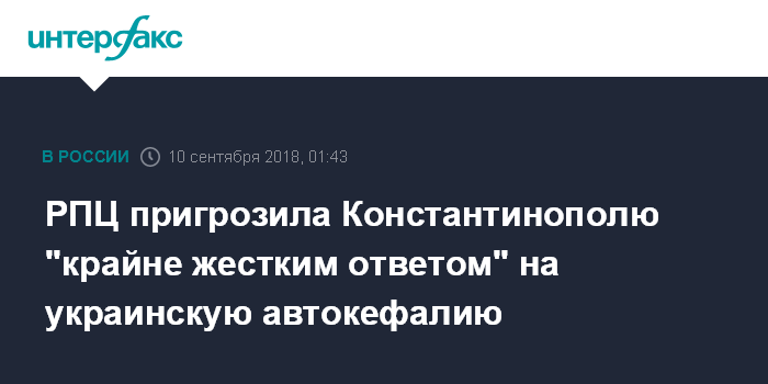РПЦ пригрозила Константинополю "крайне жестким ответом" на украинскую автокефалию