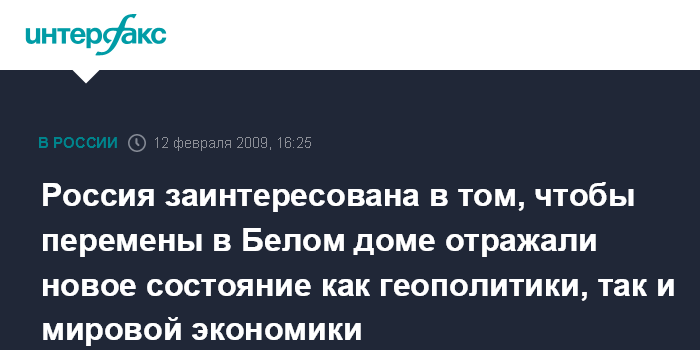 "Президент Обама пришел к власти под лозунгом перемен. Мы заинтересованы в том, чтобы эти перемены действительно отражали и новое состояние геополитической ситуации, и новое состояние мировой экономики и финансов, отражали понимание необходимости создания полицентричной системы глобального управления", - сказал он в четверг в Москве на встрече с представителями неправительственных организаций.