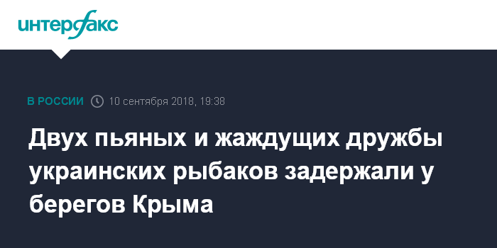 Москва. 10 сентября. INTERFAX.RU - Пограничники задержали в понедельник двух граждан Украины - нетрезвых рыбаков, незаконно пришвартовавшихся к берегу Крыма, нарушив государственную границу РФ, сообщила пресс-служба пограничного управления ФСБ по Крыму.
