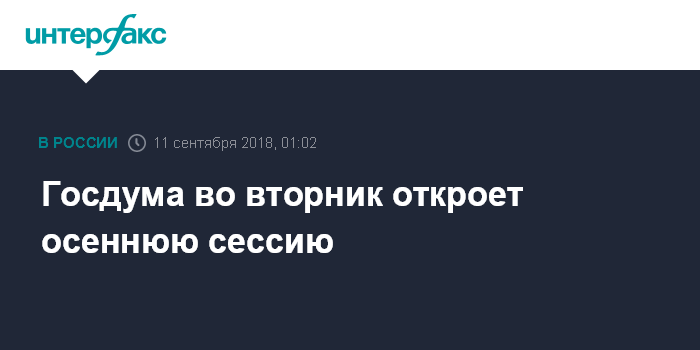 Госдума во вторник откроет осеннюю сессию