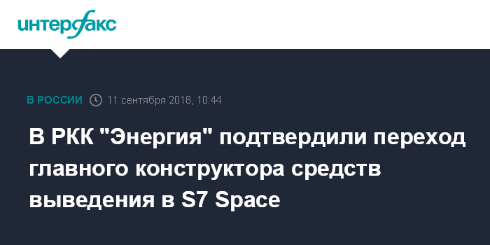 В РКК "Энергия" подтвердили переход главного конструктора средств выведения в S7 Space
