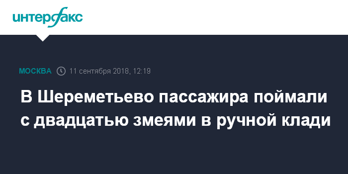 Москва. 11 сентября. INTERFAX.RU - Два десятка змей были изъяты сотрудниками таможни аэропорта Шереметьево, сообщили "Интерфаксу" в пресс-службе департамента природопользования и охраны окружающей среды Москвы во вторник.