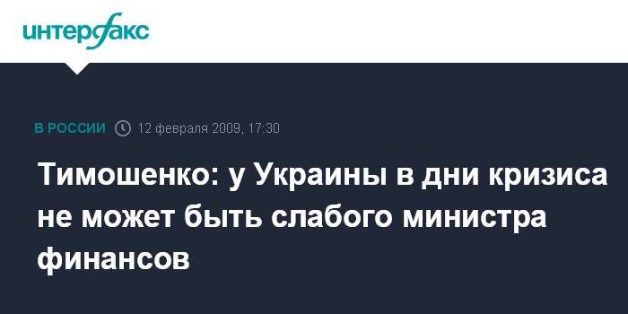 Тимошенко: у Украины в дни кризиса не может быть слабого министра финансов