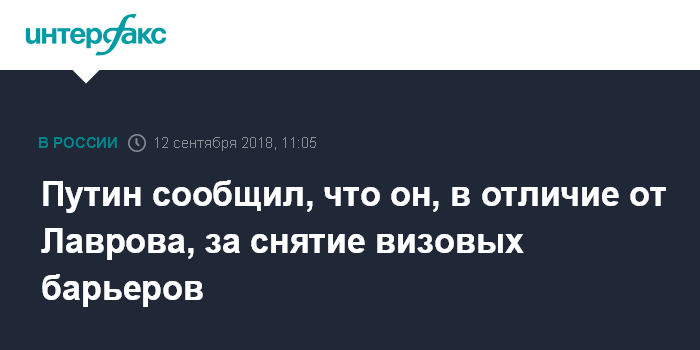 Путин сообщил, что он, в отличие от Лаврова, за снятие визовых барьеров