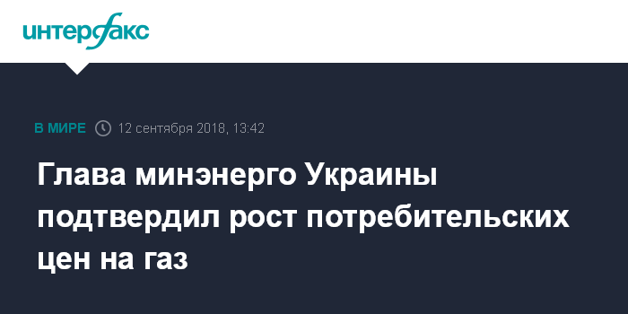 Глава минэнерго Украины подтвердил рост потребительских цен на газ