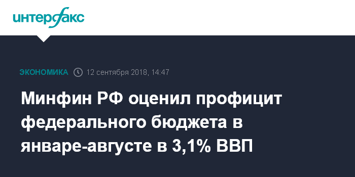 Минфин РФ оценил профицит федерального бюджета в январе-августе в 3,1% ВВП