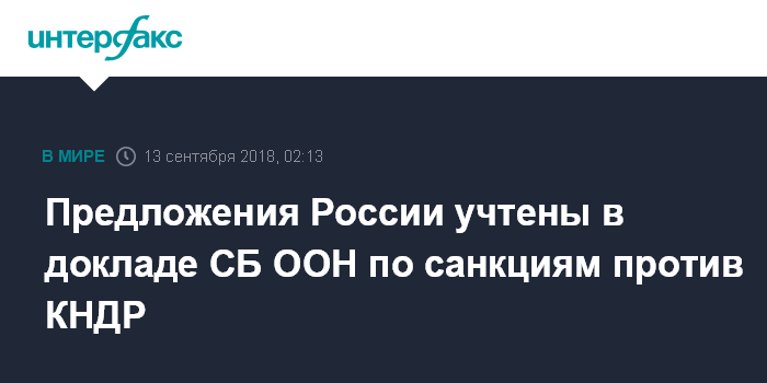 Москва. 13 сентября. INTERFAX.RU - В доклад группы экспертов Комитета 1718 Совбеза Организации Объединенных Наций о выполнении санкций в отношении Пхеньяна внесены поправки, о необходимости учета которых заявляла Россия, сообщил "Интерфаксу" пресс-секретарь постпредства РФ при ООН Федор Стржижовский.