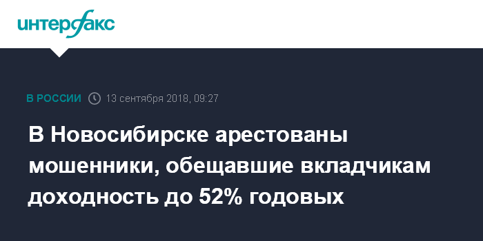 В Новосибирске арестованы мошенники, обещавшие вкладчикам доходность до 52% годовых