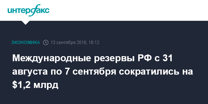 Международные резервы РФ с 31 августа по 7 сентября сократились на $1,2 млрд