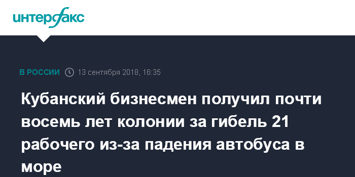 Кубанский бизнесмен получил почти восемь лет колонии за гибель 21 рабочего из-за падения автобуса в море