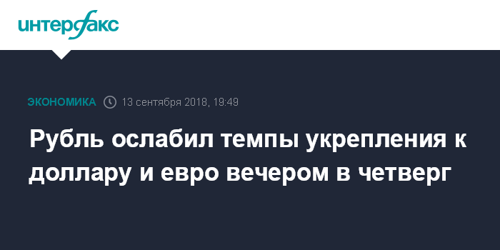 Москва. 13 сентября. INTERFAX.RU - Доллар США и евро снижаются на "Московской бирже" в четверг вечером, рубль несколько ослабил темпы роста к бивалютной корзине после появления сообщений о том, что Госдеп США готовит к ноябрю второй пакет антироссийских санкций, связанных с "делом Скрипалей".