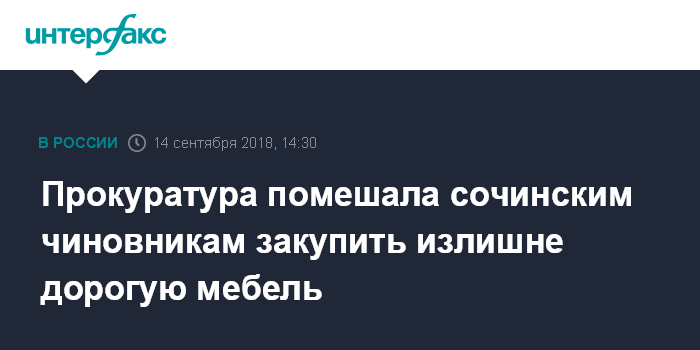 Прокуратура помешала сочинским чиновникам закупить излишне дорогую мебель