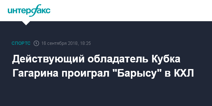 Москва. 16 сентября. INTERFAX.RU - Действующий обладатель Кубка Гагарина "Ак Барс" уступил на выезде казахстанскому "Барысу" в матче очередного тура регулярного чемпионата Континентальной хоккейной лиги (КХЛ).