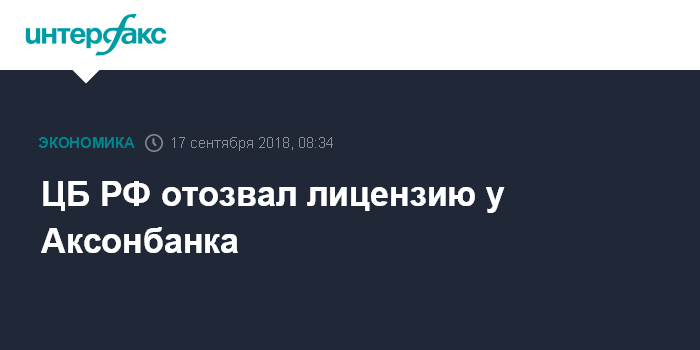 ЦБ РФ отозвал лицензию у Аксонбанка