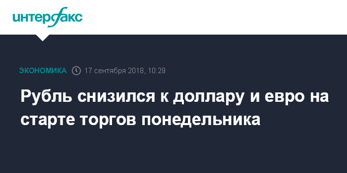 Как отмечают эксперты "Интерфакс-ЦЭА", рубль снижается к доллару и евро на старте торгов понедельника в условиях негативной динамики валют emerging markets из-за нового витка торговой напряженности после сообщений СМИ о том, что президент США Дональд Трамп поручил представителям администрации продолжить работу над пошлинами в отношении китайских товаров на $200 млрд в год на уровне 10%. Объявление о новых пошлинах ожидается уже в понедельник.
