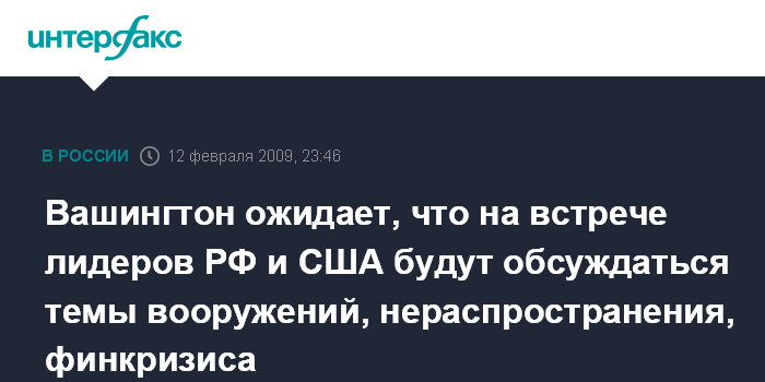 Вашингтон ожидает, что на встрече лидеров РФ и США будут обсуждаться темы вооружений, нераспространения, финкризиса