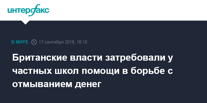 Москва. 17 сентября. INTERFAX.RU - Ведущим частным школам Великобритании следует чаще направлять отчеты в связи с подозрениями о том, что плата за обучение могла быть внесена "грязными деньгами", объявило британское Национальное агентство по борьбе с преступностью (NCA).