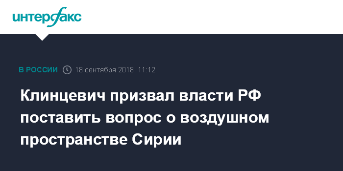 Клинцевич призвал власти РФ поставить вопрос о воздушном пространстве Сирии