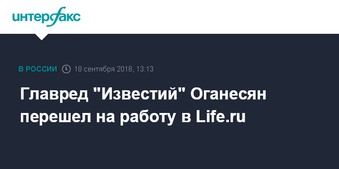 Главред "Известий" Оганесян перешел на работу в Life.ru