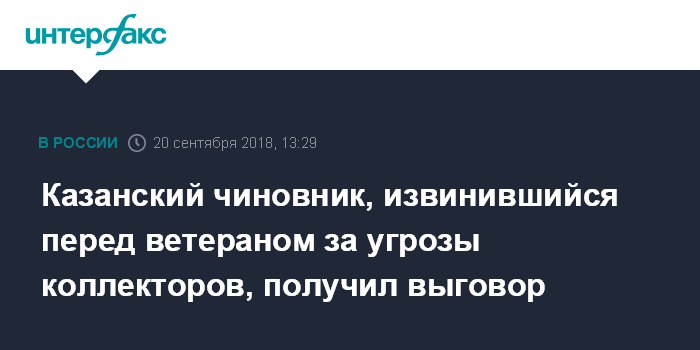 Казанский чиновник, извинившийся перед ветераном за угрозы коллекторов, получил выговор