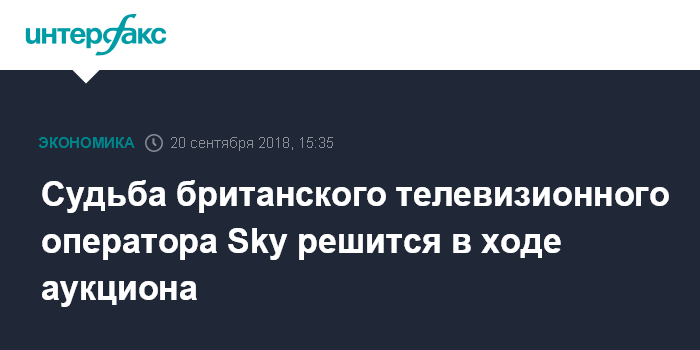 Москва. 20 сентября. INTERFAX.RU - Судьба британского телевизионного оператора Sky Plc решится в ходе аукциона, в котором примут участие претенденты на его покупку - Comcast Corp. и 21st Century Fox, ведущие борьбу за Sky уже в течение 21 месяца.