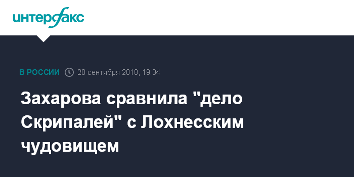 Москва. 20 сентября. INTERFAX.RU - Официальный представитель МИД РФ Мария Захарова заявила, что ситуация вокруг "дела Скрипалей" напоминает ей историю о Лохнесском чудовище, и предположила, что Лондон будет делать "новые вбросы" на этот счет.