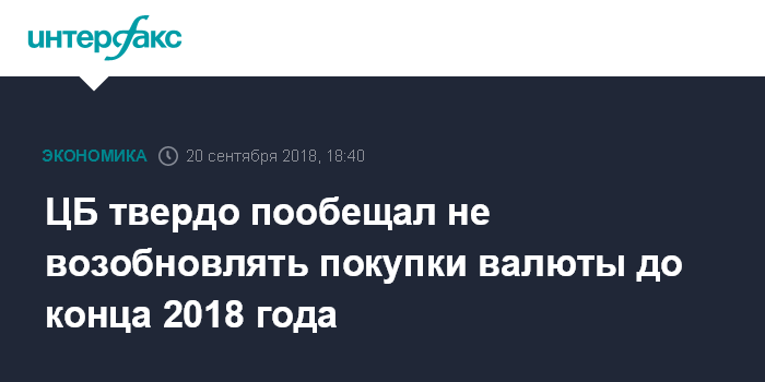 ЦБ твердо пообещал не возобновлять покупки валюты до конца 2018 года