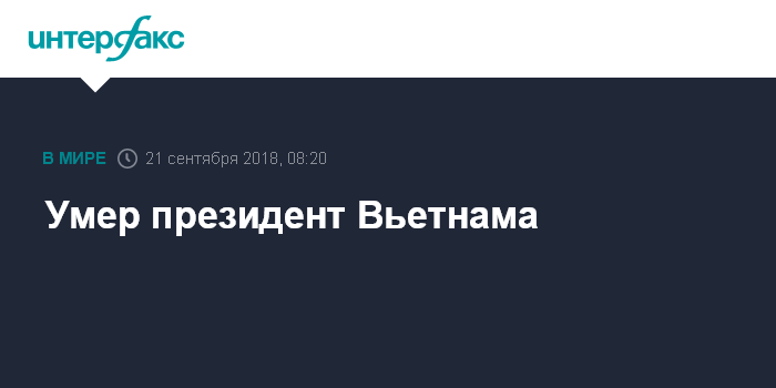 Москва. 21 сентября. INTERFAX.RU - Президент Вьетнама Чан Дай Куанг скончался в возрасте 61 года, сообщили вьетнамские государственные СМИ.