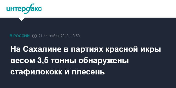 Москва. 21 сентября. INTERFAX.RU - Плесень, золотистый стафилококк и бактерии кишечной палочки выявили специалисты ветеринарной лаборатории в трех крупных партиях лососевой икры на Сахалине, сообщает в пятницу пресс-служба территориального управления Россельхознадзора по Приморскому краю и Сахалинской области.