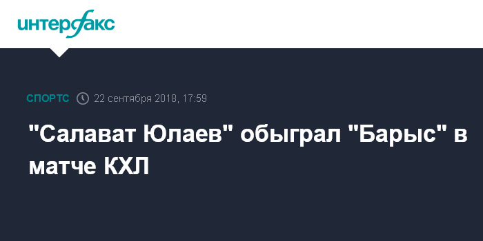 Москва. 22 сентября. INTERFAX.RU - "Салават Юлаев" в субботу нанес поражение "Барысу" в домашнем матче регулярного чемпионата Континентальной хоккейной лиги (КХЛ).