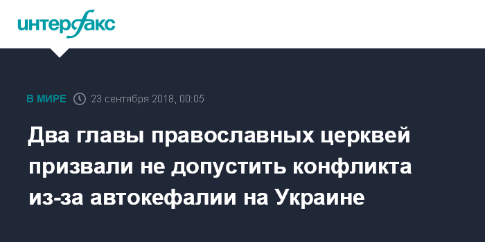 "Мы, главы двух поместных Церквей, (...) осознавая ответственность за жизнь святого православия, его мир, единство и соблюдение догматического и канонического порядка, перед лицом испытаний, которые переживает сегодня православие в Украине, в духе братской любви призываем всех, от кого зависит преодоление церковных недоразумений, связанных с предоставлением автокефалии Украинской церкви, сделать все, что от них зависит, во избежание конфликта из-за этого вопроса и для установления мира на украинской земле", - говорится в обращении, которое цитирует греческое агентство церковных новостей "Ромфеа".