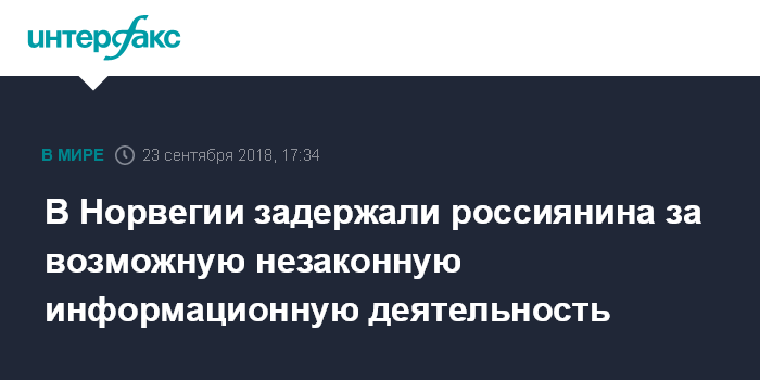 Москва. 23 сентября. INTERFAX.RU - Гражданин РФ был задержан и временно находится под стражей в Норвегии по подозрению в незаконной информационной деятельности, передают в воскресенье западные СМИ.