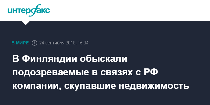 Москва. 24 сентября. INTERFAX.RU - Финская полиция провела серию обысков компаний в городе Турку и регионе Варсинайс-Суоми к западу от Хельсинки, которые скупили недвижимость вблизи стратегически важных объектов, сообщают местные СМИ.