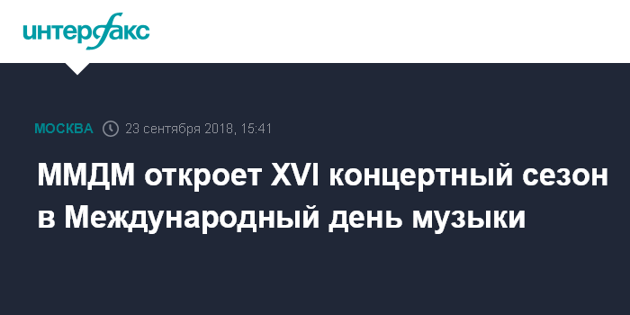 Москва. 24 сентября. INTERFAX.RU - XVI концертный сезон Московский международный Дом музыки откроет 1 октября 2018 года, в Международный день музыки.