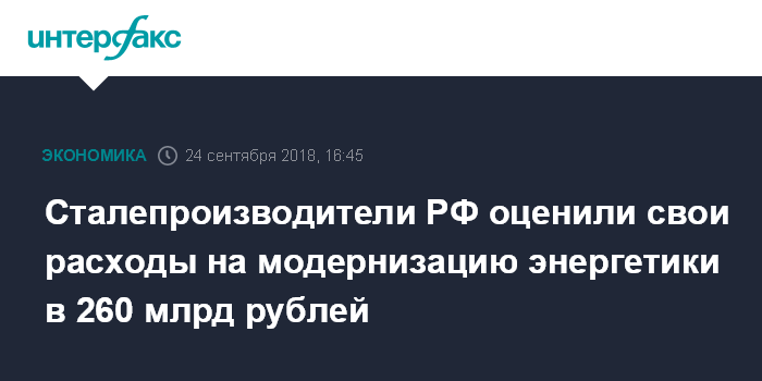 Сталепроизводители РФ оценили свои расходы на модернизацию энергетики в 260 млрд рублей