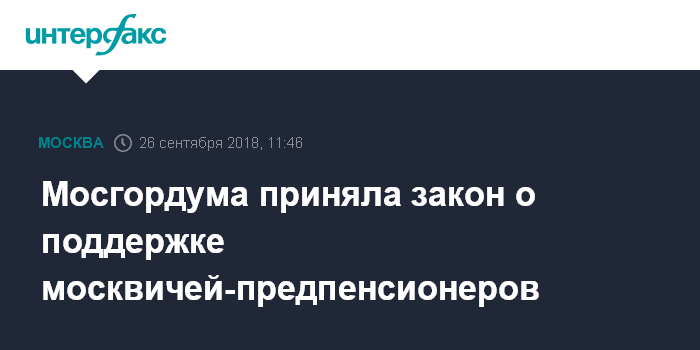 Москва. 26 сентября. INTERFAX.RU - Мосгордума на первом заседании осенней сессии в среду приняла в целом закон о дополнительных мерах поддержки и сохранении льгот для жителей города предпенсионного возраста в связи с изменениями федерального законодательства.