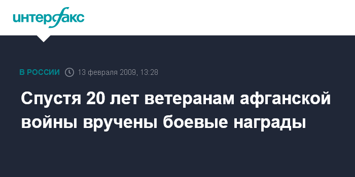 Москва. 13 февраля. INTERFAX.RU - Первый заместитель министра обороны генерал-полковник Александр Колмаков вручил участникам боевых действий в Афганистане боевые награды, которые они заслужили более 20 лет назад.