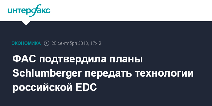 ФАС подтвердила планы Schlumberger передать технологии российской EDC