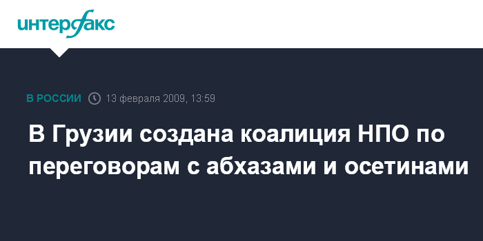 Тбилиси. 13 февраля. INTERFAX.RU - В Грузии создана коалиция из семи неправительственных организаций "Миссия мира" по переговорам с абхазскими и осетинскими коллегами.