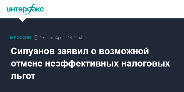 Москва. 27 сентября. INTERFAX.RU - Некоторые неэффективные налоговые льготы могут быть отменены, сообщил первый вице-премьер, министр финансов РФ Антон Силуанов, выступая в Госдуме.