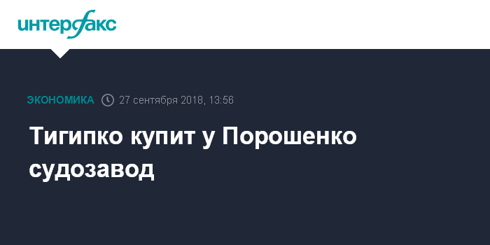 Москва. 27 сентября. INTERFAX.RU - Группа "ТАС" Сергея Тигипко достигла предварительной договоренности о покупке ЧАО "Завод "Кузня на Рыбальском" (оба - Киев), сообщили агентству "Интерфакс-Украина" в пресс-службе группы в четверг.