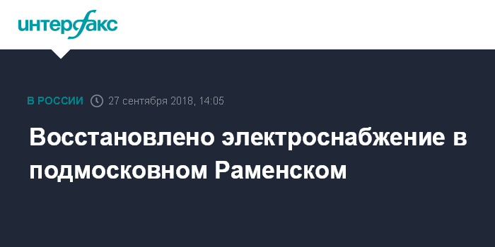 Восстановлено электроснабжение в подмосковном Раменском
